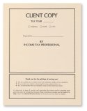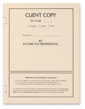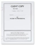 Use this white tax return cover for a classic presentation to your client. It features a summary of information plus safe storage instructions on the front. New side tabs now make it easy to secure up to 30 pages inside. Compatible mailing envelopes can provide added security for mailing. This cover is available on smooth 80lb cover stock and measures 8 3/4" x 11 1/2" when folded.
