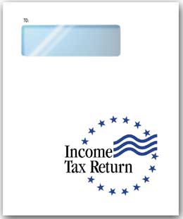 Use this Income Tax Return window envelope with a Peel-and-Seal flap to easily mail any tax return or report. A blue interior tint adds security while the cellophane window allows the taxpayer name and address to clearly show through. Add a professional touch by imprinting your return address on the back flap.This 9 1/2 x 11 1/2 envelope is constructed of 28lb paper.