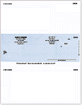 Order this laser multi-purpose check and we'll print your company and bank information. You print variable data with your accounting software for a complete check. We can also print your logo, please call us for details. Prices include standard imprinting. Each 8 1/2" x 11" sheets contains 1 top check and 2 stubs and is constructed of 24# paper. Indicate check color below. Measuring from the top down, the check portion is 3.5" high, the 1st stub begins at 3.5" and measures 3.5" high,the 2nd stub begins at 7" and measures 4" in height. This check works with Quickbooks. |