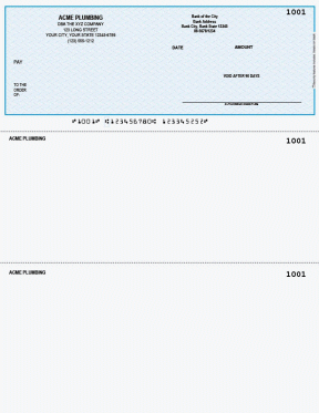 Order this laser multi-purpose check and we'll print your company and bank information. You print variable data with your accounting software for a complete check. We can also print your logo, please call us for details. Prices include standard imprinting. Each 8 1/2" x 11" sheets contains 1 top check and 2 stubs and is constructed of 24# paper. Indicate your color preference below. Used with COATS software.