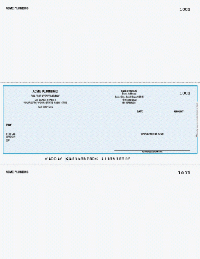 Order this laser multi-purpose check and we'll print your company and bank information. You print variable data with your accounting software for a complete check. We can also print your logo, please call us for details. Prices include standard imprinting. Each 8 1/2" x 11" sheets contains 1 top check and 2 stubs and is constructed of 24# paper. Indicate your color preference below.