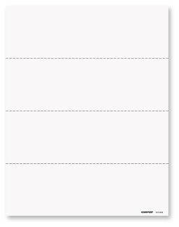 Use this blank 4-up laser paper for printing condensed employee W-2 forms. Your laser printer generates the complete form with Employee Copies B/C/2/2 (federal/file/state/city). Sheets are 8 ½" x 11" with 3 horizontal perforations, creating 4 forms, and are constructed of 20# laser paper. When ordering this 4-up paper please select employee instructions on back or no instructions on the back. Order by the number of sheets needed. Envelope compatibility depends on your software. Please request a sample to ensure compatibility.