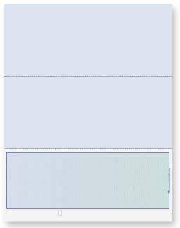 Use this high quality blank check stock with your accounting software, laser printer and MICR toner to produce complete checks. Each 8 1/2" x 11" sheet contains 1 bottom check and 2 stubs and is constructed of 24# paper with perforations at 3 2/3" and 7 1/3". These checks Do Not include a signature line. Indicate the check color when ordering.