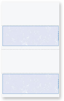 Each 8 1/2" x 14" sheet contains 2 checks and 2 stubs which is constructed of 24# paper. These laser checks DO NOT include a signature line. Order by the number of checks needed, not number of sheets. There is a 1/2 " margin on the bottom for the MICR line. These are blank checks, your software must be able to print MICR encoding.