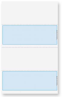 Each 8 1/2" x 14" sheet contains 2 checks which is constructed of 24# paper. Order by the number of checks needed, not number of sheets. These are blank checks, your software must be able to print MICR encoding.