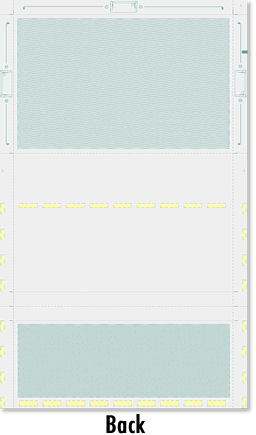 8 1/2" X 14" Eccentric Z-fold. Green check with blue remit.