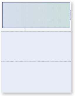 Use this high quality blank check stock with your accounting software, laser printer and MICR toner to produce complete checks. Each 8 1/2" x 11" sheet contains 1 check, and is constructed of 24# paper with perforations at 3 2/3" and 7 1/3". These checks DO NOT include a signature line. Indicate the check color on the first page of your shopping cart information.
