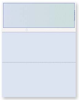 Use this high quality blank check stock with your accounting software, laser printer and MICR toner to produce complete checks. Each 8 1/2" x 11" sheet contains 1 top check and 2 stubs, and is constructed of 24# paper. Measuring From the top down, the check portion is 3 1/2" high. The 1st stub begins at 3½ " and is 3½" high. the 2nd stub begins at 7"and measures 4" in height. These checks DO NOT include a signature line. This is a blank check, your software must be able to print MICR encoding.