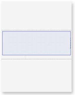 Use this high quality blank check stock with your accounting software, laser printer and MICR toner to produce complete checks. Each 8 1/2" x 11" sheet contains 1 middle check and 2 stubs, and is constructed of 24# paper. Measuring from the top down, the first stub is 3.5" high, the check portion begins at 3.5" and is 3.5" high, the 2nd stub begins at 7" and is 4" in height. These laser checks DO NOT include a signature line. Indicate the check color when ordering.