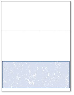 Each 8 1/2" x 11" sheet contains 1 bottom check and 2 stubs, and is constructed of 24# paper. Measuring from the top down the 1st stub is 4" high, the 2nd stub begins at 4" and is 3.5" high, the check portion begins at 7.5" and measures 3.5" in height. These laser checks DO NOT include a signature line. These are blank checks, your software must be able to print MICR encoding. Indicate the check color below.