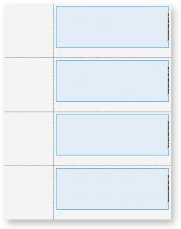 Each 8 1/2" x 11" sheet contains 4 checks and is constructed of 24# paper. Order by the number of checks needed, not number of sheets. These are blank checks, your software must be able to print MICR encoding.