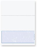 Each 8.5" by 11" sheet contains 1 bottom check and 2 stubs, constructed of 24 # paper. These laser checks DO NOT include a signature line. There is a 1/2" margin on the bottom of the check for the MICR line. Measuring from the top down, the 1st stub is 3 2/3" high. The 2nd stub begins at 3 2/3" and is 3 2/3" high. The check portion begins at 7 1/3" and measures 3 2/3" in height. Indicate check color below. These are blank checks, your software must be able to print MICR encoding. |
